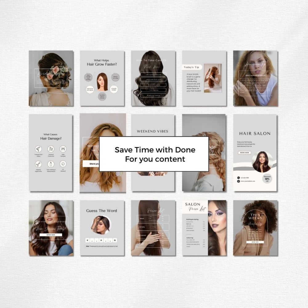 Elevate Your Salon's Online Presence! Our collection of customizable Instagram templates tailored for hair salons. These templates are designed to highlight your salon's unique personality and professional services. Engage your audience, attract new clients, and showcase your stylistic expertise with eye-catching visuals.