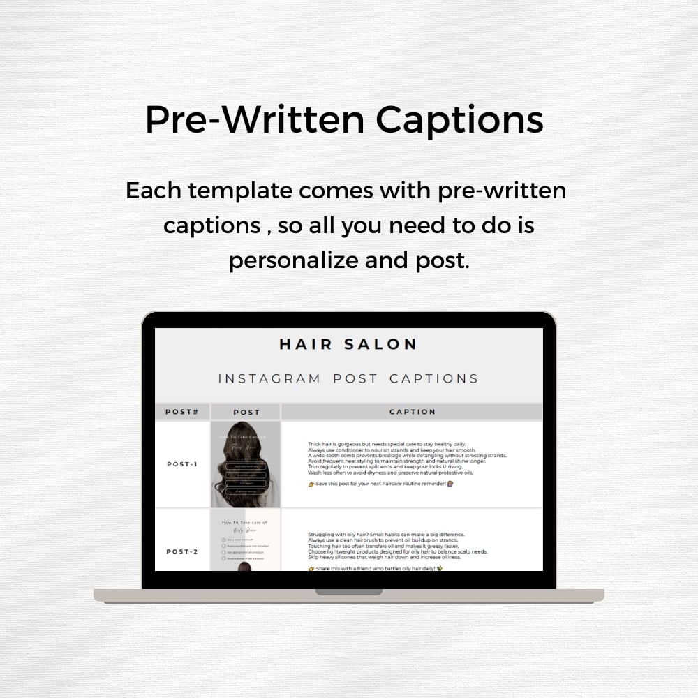 Each template comes with pre-written captions so, all you need to do is personalize and post.